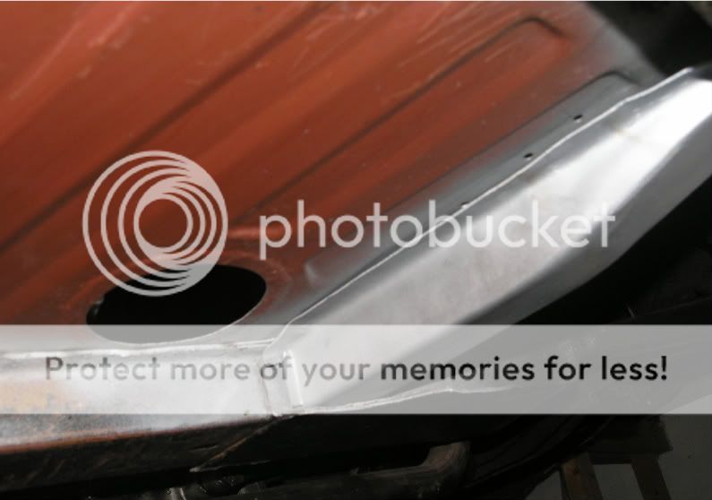I had my floor panel from Wards and it had the hole in the centre like the originals. I used these to get the welding clamps in place and pull the two together for welding up. I had pre drilled the floor panel and spot welded through to the outrigger flange much like the original. I also supported the outriggers from underneath with a trolley jack. This gave me a tight join between floor and outrigger.