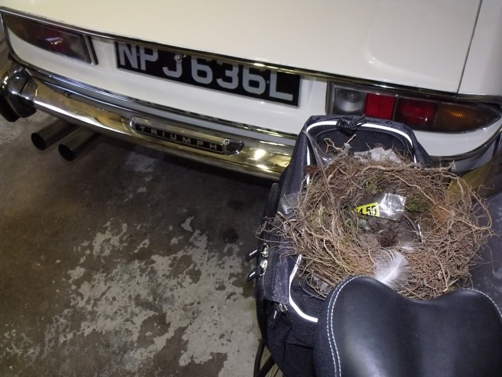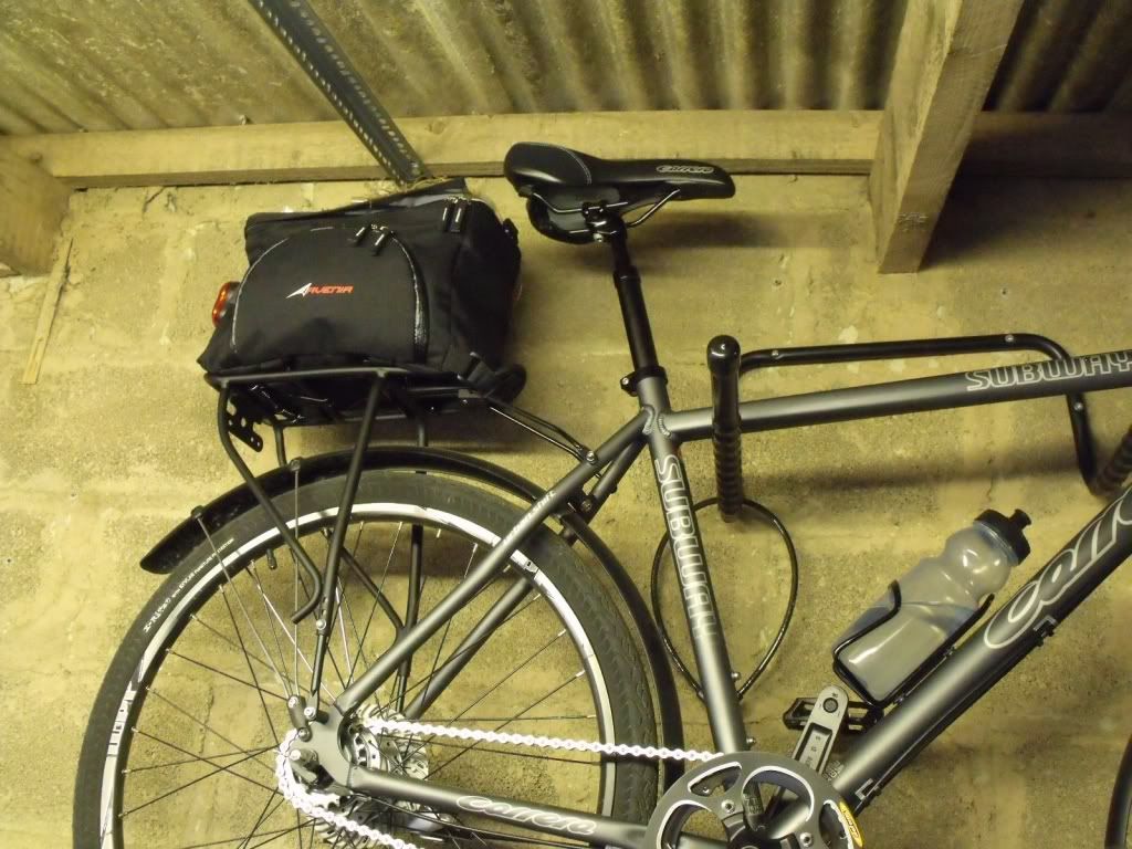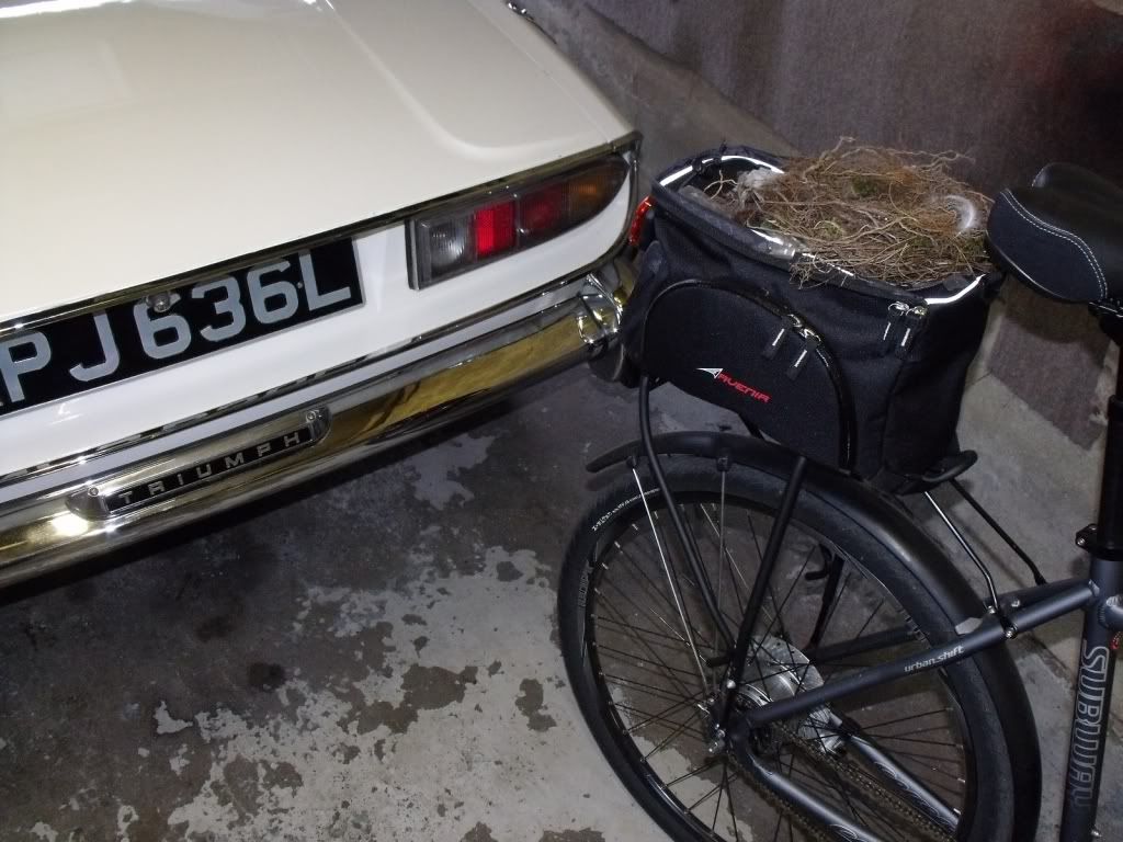 About the same time as I got the Stag I also invested in a bike with the idea being that I get some more exercise. Well all my spare time has more or less been taken up with the car, and I sort of forgot about the bike. Today I was working in the garage again, and happened to glance up at the bike on the wall and noticed something strange (see photographs!)