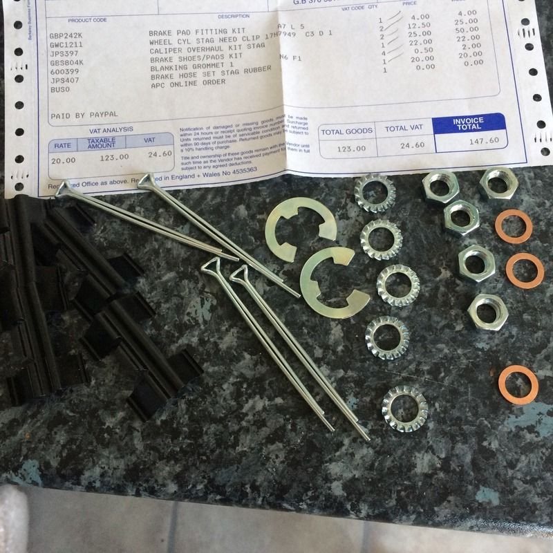 slowly ordering bits as you can see in pic i ordered flexis shoes cylinders pads caliper rebuild kit, brake pad fitting kit