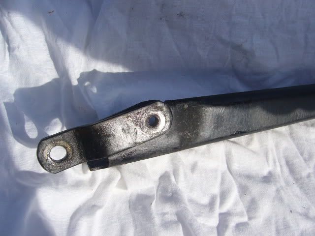 Now here's the confusion...coming off the rear end of the side rails is a short (8cm) cranked joining piece. (See pic) On the replacement I have obtained this cranked piece is bolted to the side rail and would thus rotate. On the rails I've just pulled off its welded on but still retains the bolt hole as this is utilised by another piece.